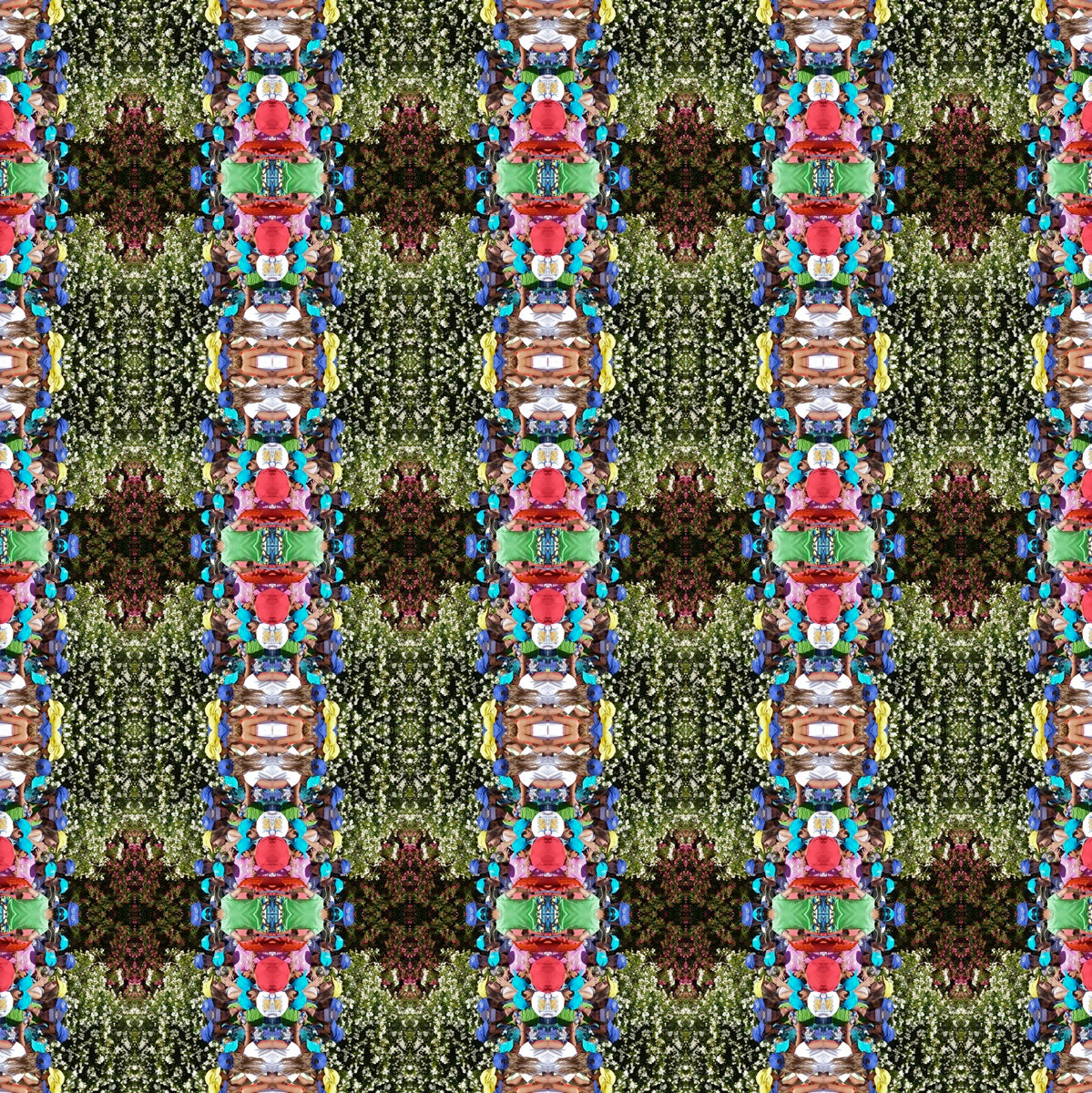 As composições de Rosilene Fontes caracterizam-se por conter elementos que remetem às suas lembranças de infância (como os seus balões coloridos), assim como por reunir elementos semelhantes em termos de textura e impacto. Por exemplo, icônicos azulejos de capitais europeias como Paris, Lisboa e Amsterdã são desconstruídos e reconstruídos numa composição colorida, espelhada e, articuladamente, fluída. Através da repetição de tais padrões e texturas, a artista dá vida a novos “espaços de fabulações”, provocadores de novas leituras sobre o mundo.
