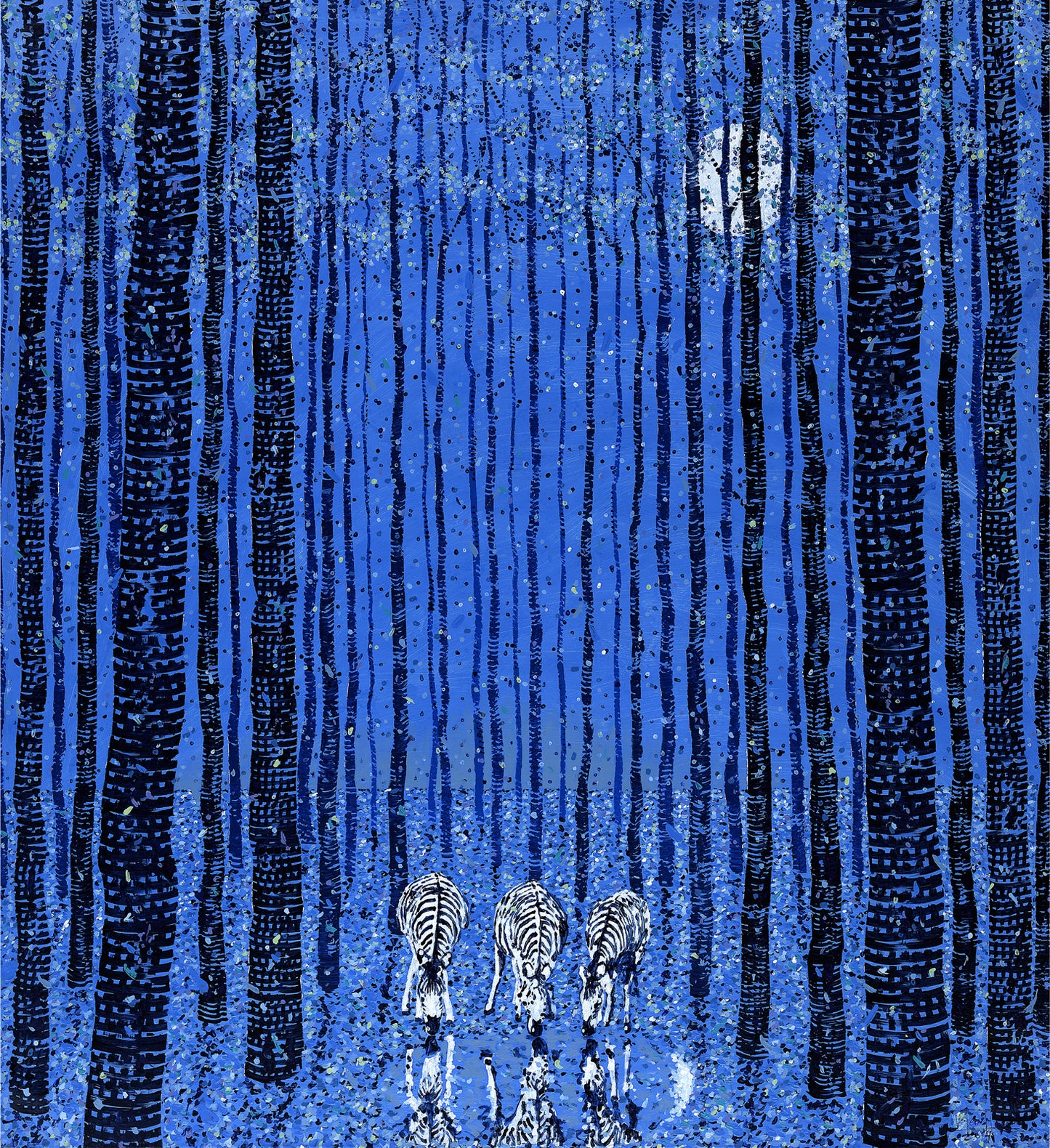 Na série exclusiva da Democrart, é possível observar a estrutura complexa e até humorística com que cada tela é construída. Situações irreais, como três zebras numa floresta europeia, na peça “Sed de três africanos en Europa”, vão se tornando, misteriosamente, harmoniosas.
