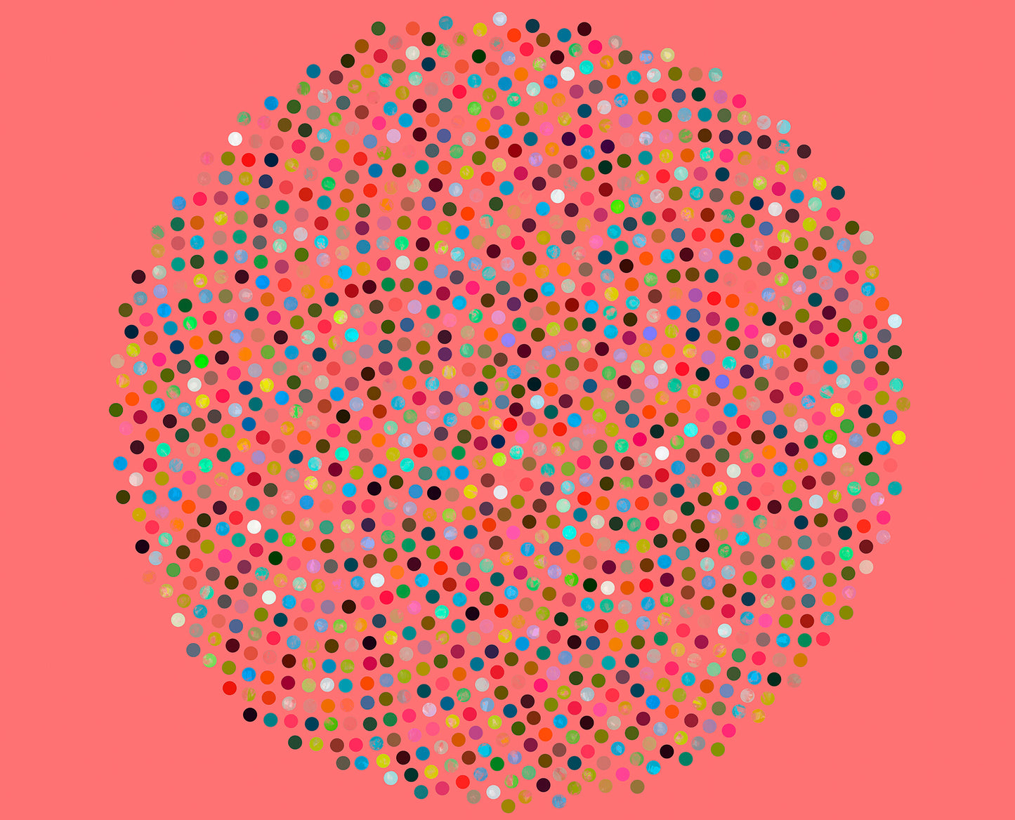 Pintura em acrílica. Série VERTICAL. Colorido. Bolinhas. Repetição. Geométrico.