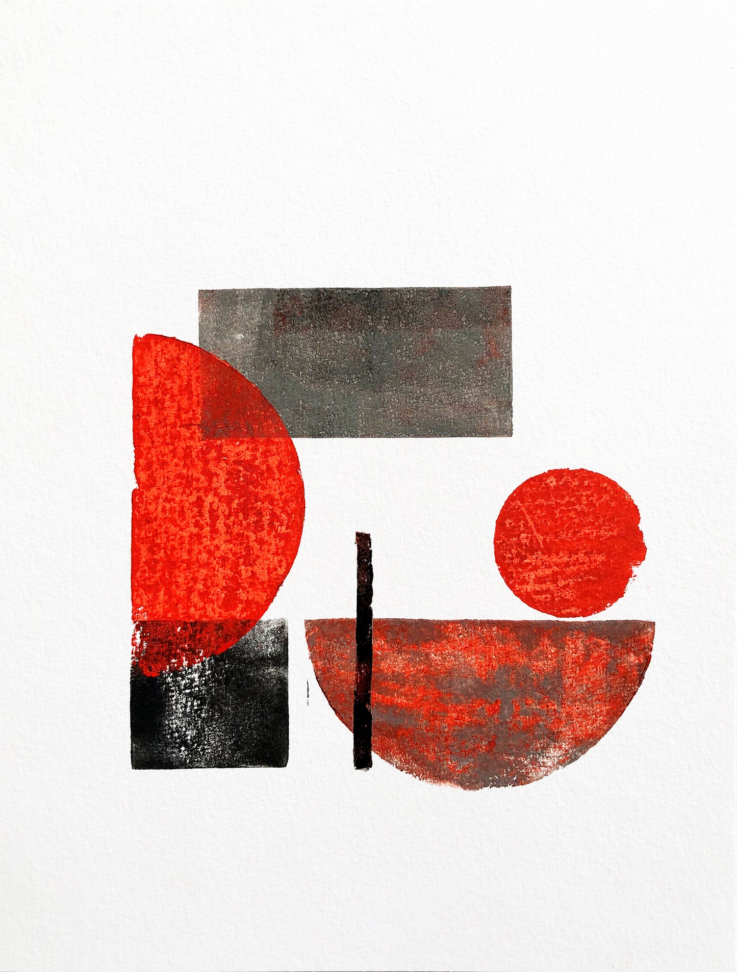 Pintura à óleo. Composição de formas geométricas. Preto e Vermelho.