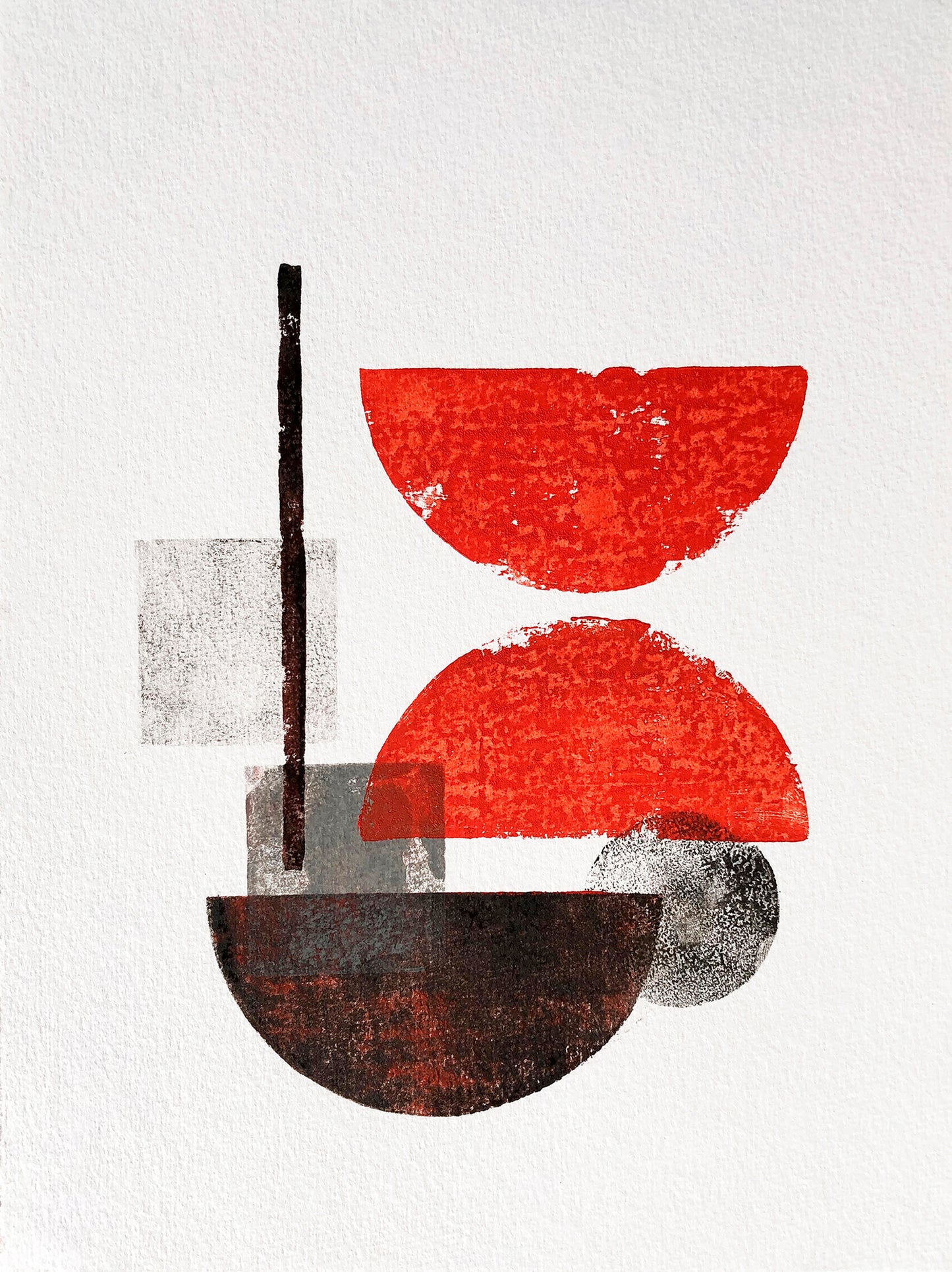 Pintura à óleo. Composição de formas geométricas. Preto e Vermelho.