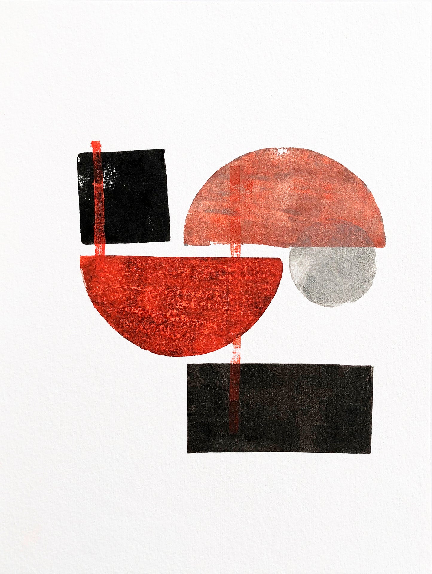 Pintura à óleo. Composição de formas geométricas. Preto e Vermelho.