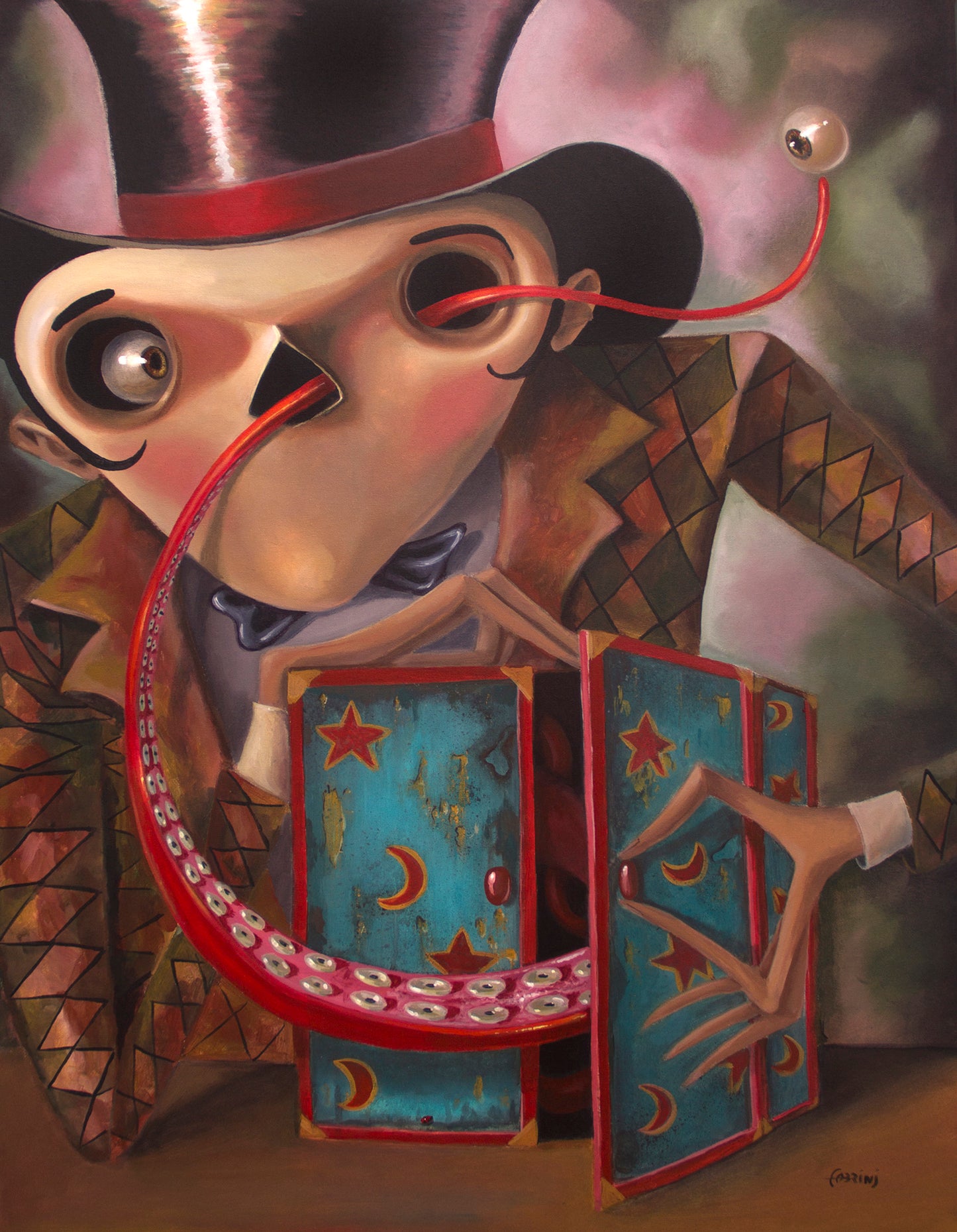 Pintura em acrílica. Surrealismo. Colorido. Vermelho. Circo.