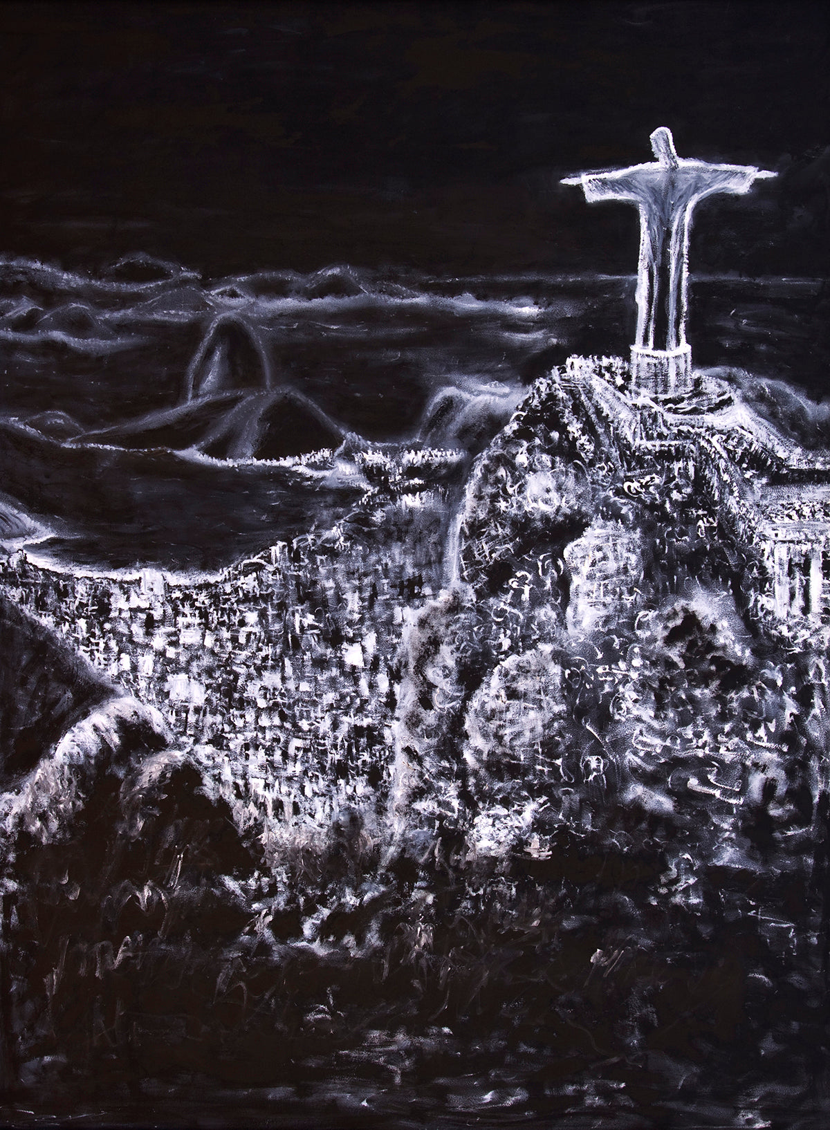 O tamanho total de 40x50cm inclui a obra e uma borda branca ao redor.